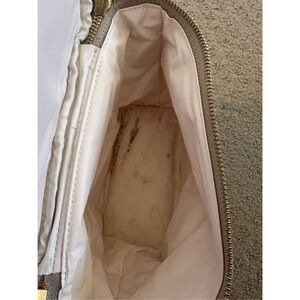Kate Spade out to lunch makeup bag tan with polka dots and gold zipper. Measures 6” tall and 4” x 8” at base. Great used condition. Some stains that will come out in wash