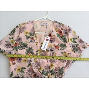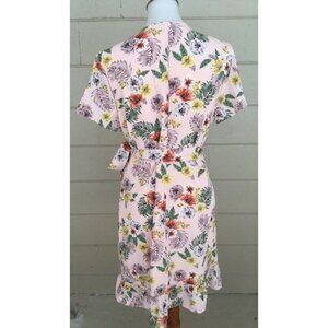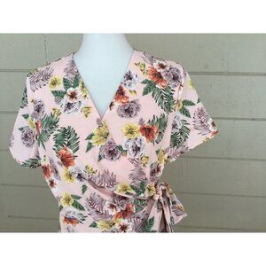 Kate Summer Floral Mini Dress Wrap V-Neck Size M/L Pastel Print Ruffle Hem