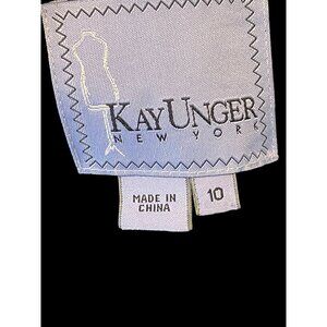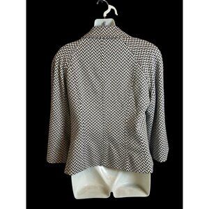Kay Unger Women's Herringbone Cape Jacket. Black and white. Cotton-Blend Monochrome. Stylish and sophisticated Kay Unger cape jacket in a herringbone pattern. Ideal for layering in professional settings, offering both comfort and elegance. EUC. Minimal signs of wear.