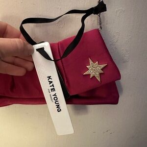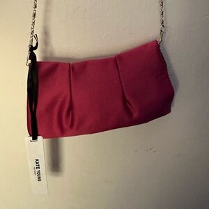 Brand new with tags and never used! Curved clutch in pink from the Kate Young for Target collection. Small sized clutch with cute gold star accent and long chain to wear as a shoulder bag or crossbody