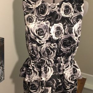 This peplum dress brings the drama with the roses and ruffles! Laying flat, the dress measures 20” from armpit to armpit and 16.5” in the waistline. From the top of the center back to the bottom of the hem, the dress measures 35” in length.