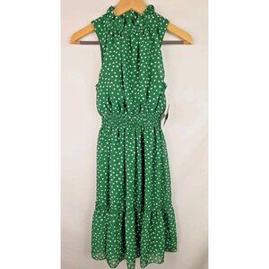 Kate and Lily Dress Women's Size 4 Green Polka Dot Sleeveless High Neck Ruffle
