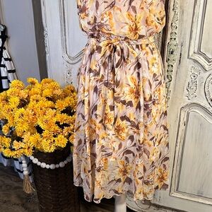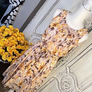 Kate and Lily Floral Sleeveless Dress Fall Colors Yellow and Brown