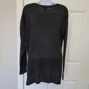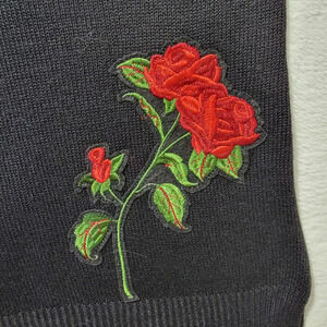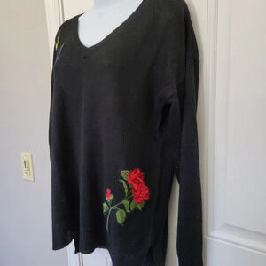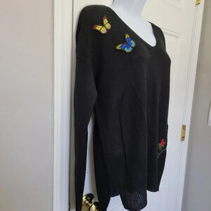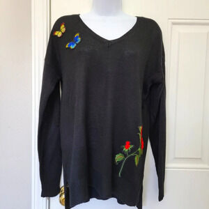 Kate and Mallory Lightweight Knit Sweater Black Embroidered Butterflies Roses M