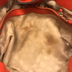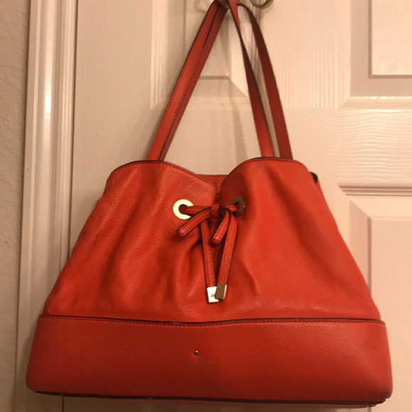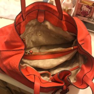 Love this bag. Generally used. Wore a little shows on pictures. Hot orange color