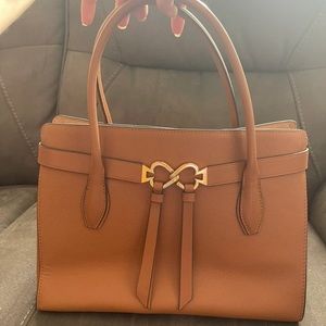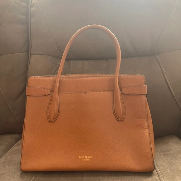 This Toujours tote by Kate Spade is a fabulous choice for everyday use. Crafted from smooth leather in tan, it features slick top handles and bow-detailed strap detailing. Lined with suede, the interior houses one patch pocket and one zipped pocket. This elegant bag ensures an ultra-lightweight and breezy finish.