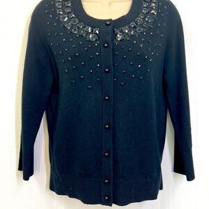 Kate Spade - Kati Black Beaded Wool And Cashmere Button Up Cardigan Small