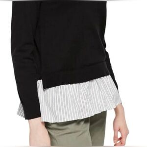Kate spade Mixed Media Stripe Hem Cotton Silk Sweater Black Size Medium
