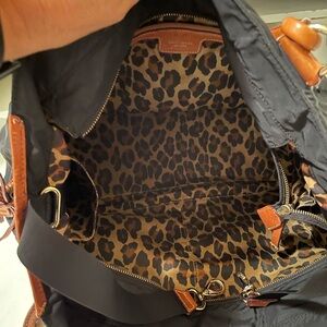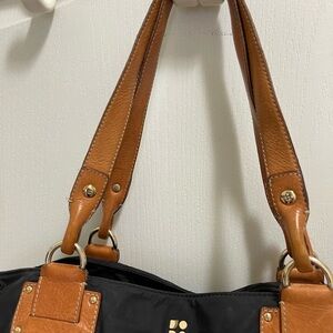 Gorgeous bag good used conditions no damages rips scarabs just the bottom of bag have some sign of wears two sides with packets design with leather straps