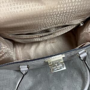 Overall good used condition Kate Spade alligator embossed handbag. This piece is super sturdy! Please note: this shows signs of wear on the handles and some on the bottom ~ please see photos for accurate depiction of condition. LOTS of life left in this beauty ~ I have loved it, but it’s time for someone else to love it now! It’s a gorgeous neutral gray with tones of texture on it ~ which just matches simply everything.