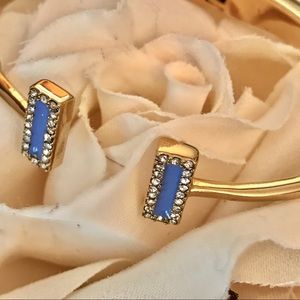 Wear it alone or layer it with other bracelets. 12 karat gold plated and embellished with blue enamel surrounded by crystals. Brand new with tags and dust bag!