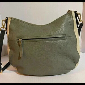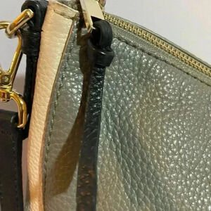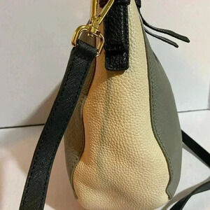 Kate spade grey beige leather satchel handbag with gold tone hardware main compartment 3 pockets at interior wall 1 zip fabric lining logo a front zip closure at top zip pocket at back lining have some stains exterior have minor marks hight 9.5” width 14” depth 4.5” strap drop 25” adjustable The dimensions are based on approximately measurements before placing an order please check take a moment to view all photos using feature for a closer look