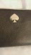 Good pre owned condition. zip around to accordion style wallet. only flaw..some tarnish on heart..see pictures. otherwise great wallet. measures 7 inches wide. 4 inches long. gold hardware