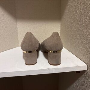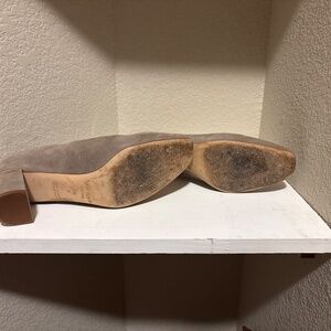 Somewhat worn with some scuffs but overall still very nice, this is a light grey suede