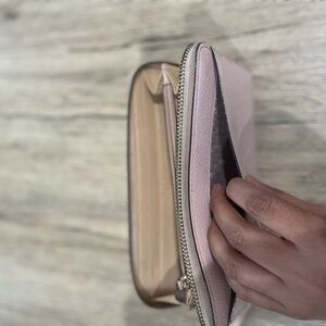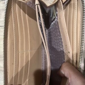 Kate spade zip closure leather wallet, preowned, no tears, some dirt marks included in pictures, has 12 spaces for credit cards, approximately 8x4x1