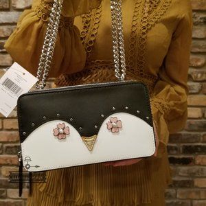 Kate spade double zip chain crossbody frosty black penguin NWT