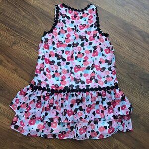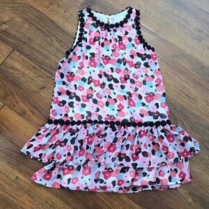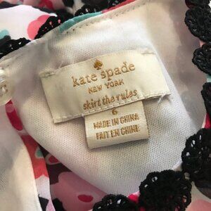 Kate spade floral drop waist tiered sleeveless dress with black lace trim