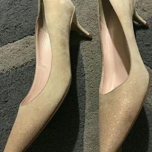 Used good condition. Pinkish blushy colo. Has a bit of glitter on front heels, suede size 7