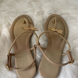 Kate spade khaki thong sandals embellished with a gold tone bow size 6M