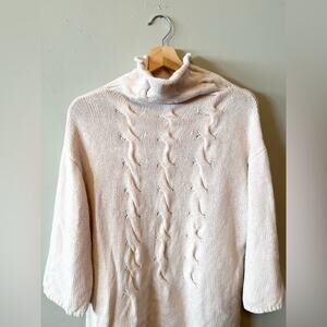 Kate spade pink cable knit mock neck sweater cotton wool blend boxy oversized