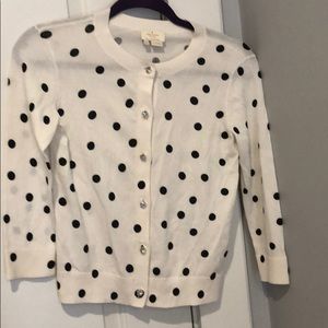 Cream and black polka dot cardigan with cute rhinestone buttons. Size says xxs but fits more like a xs or s. Only worn once for trying on. Beautiful buttoned or worn open.