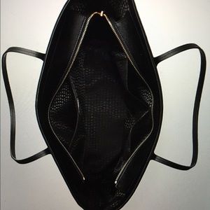 @ednanae Size: 11.3"h x 15.6"w x 6.2"d Drop: 9.8" Material: Nylon with PVC trim, lining Open top tote with zipper closure Dual interior slide pockets and interior zipper pocket