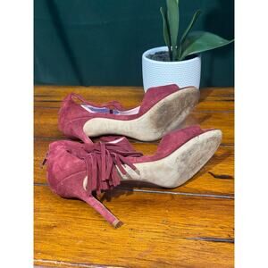 Great suede heel in great colorway which is reddish burgundy