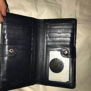 Kate spade wallet, great for someone with lots of cards can hold 12 cards and has a spot for I.D also has a areas for cash and has zipper for coins