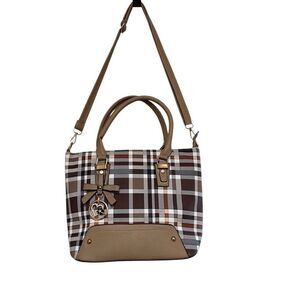 Kate Hill Brown Plaid Crossbody Shoulder Convertible Adjustable Handbag Purse