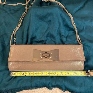 Kate Landry gold clutch, two straps or just tuck and carry as a clutch, NOTE: minor wear, please refer to the last three pictures