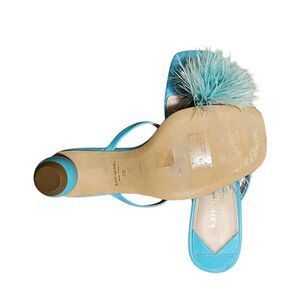 Step out in style with these chic Prada sandals. Featuring a striking blue color and elegant feather detailing, these shoes are perfect for any occasion.