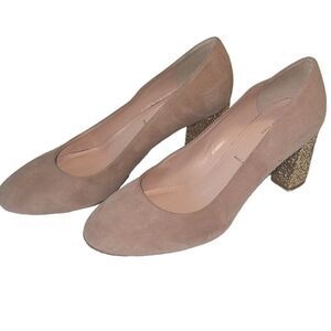 Kate Spade Anastasia Demi Rose Soft Suede Glitter Heel Pumps Size 7.5