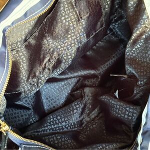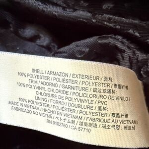 Gorgeous and stylish bag with so much room! Zipper closure, gold logo plate on front, interior, zipper component, and two slot components