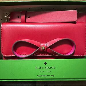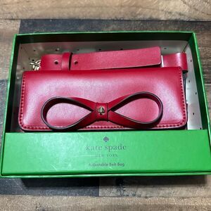 A spade stud secures the dainty bow of a polished leather flap pull-through pouch on a sleek leather belt strap for versatile, hands-free styling.