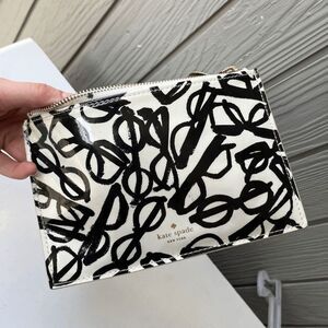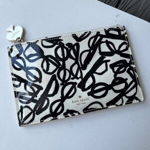 Kate Spade Eyeglass Print Zip Pouch Clutch Patent Leather Look 8.5"x5.25"