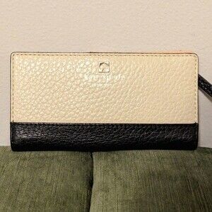 Kate Spade Genuine Black Cream Leather Color Block Bifold Wallet