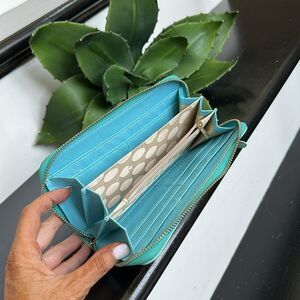 Kate Spade Mint Green Glitter-Trim Genuine Leather Zip-Around Wallet – Matching Tote Available