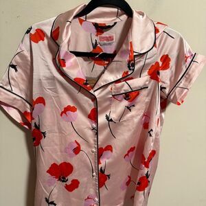 Kate Spade NY Charmuse Fluttering Poppy Cropped Silk Pink PJ Pajama- Size Small