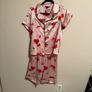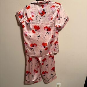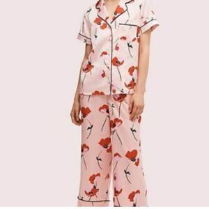 Kate Spade NY Charmuse Fluttering Poppy Cropped Silk Like Pink PJ Pajama Set