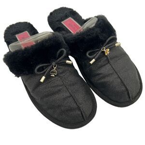 Kate Spade NY Lacey Faux Fur Black Slippers Lightweight Flat Designer Fuzzy