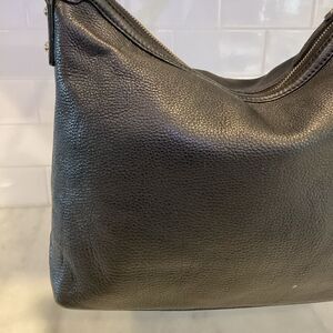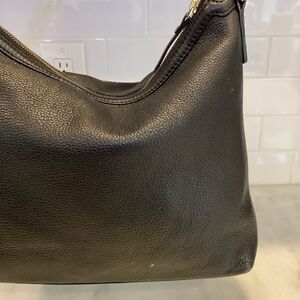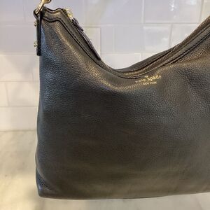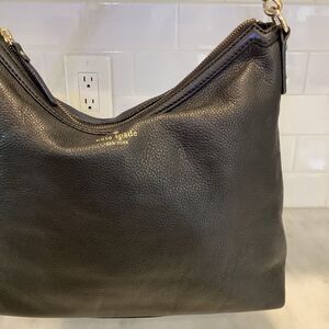Authentic Kate Spade New York Cobble Hill Medium Serena Hobo Shoulder Bag in EUC. Elevate your style with this elegant black leather shoulder bag from Kate Spade. Perfect for any occasion, this bag combines sophistication with practicality. Listed for $264 on Amazon!! Approximate measurements - 11.3"h x 12.6"w x 3.9"d drop length: 9" Pebbled leather with matching trim capital kate jacquard lining 14-karat light gold plated hardware style # wkru4147 Shoulder bag with zipper closure interior zip and double slide pockets gold printed kate spade new york signature. Photos are the best description of this KS classic leather bag!! Please aske questions and make an offer!!
