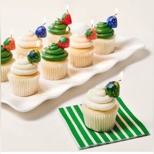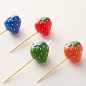 Charming strawberry-shaped candles by Kate Spade. Brighten up your party with blue, red, green, and orange hues. Perfect for festive occasions.