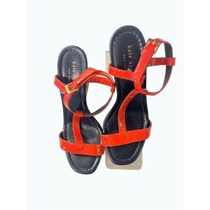 Kate Spade Orange Patent Leather Cutout Accent T-Strap Sandals 6