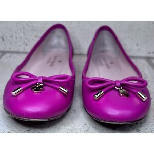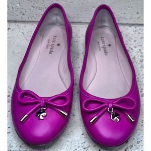 Kate Spade Pink Leather Ballet Flats Willia Bow Gold Spade Charm Shoes Sz 5.5