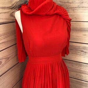 Kate Spade Red Pleated Cape Overlay Fit & Flare Dress Size 0