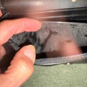 Organizer-style interior: zippered compartment, slip pocket, card slots