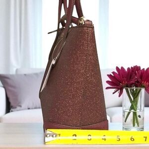 Kate Spade Lola satchel in deep nova burgundy glitter fabric with saffiano PVC trim.
