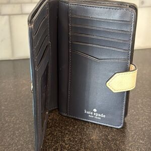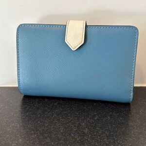TAGS: kate spade staci wallet, blue ivory bifold, colorblock card holder, saffiano leather wallet, compact zip wallet, snap closure wallet, authentic kate spade
