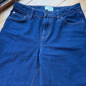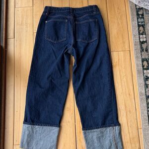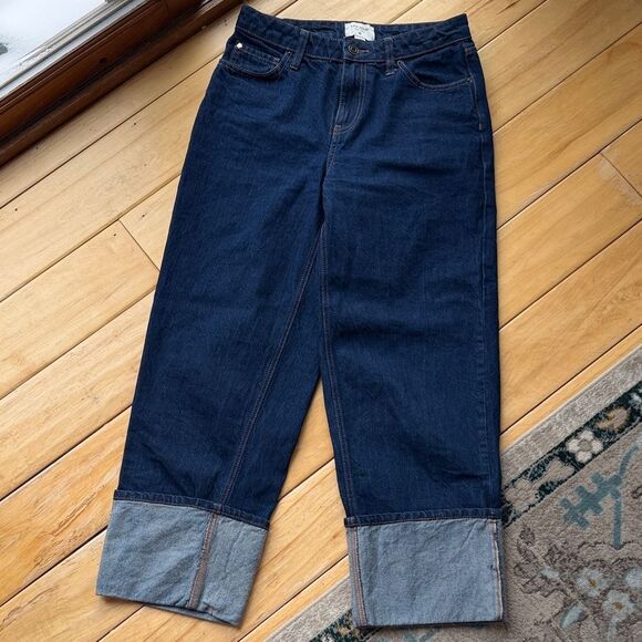 Elevate your casual wardrobe with these classic dark blue jeans. Perfect for everyday wear. Cuffed at the bottom, but unsure actual style. Size 2! New condition!!