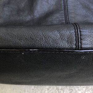 Pebble leather, black bag . Bottom of the bag has a couple of marks that can be touched up and not visible when you’re caring. Exterior of the bag is in good condition inside needs clean up so please look at the pictures. Measuring the base of the bag is 13 x 9 x 5.5 with a handle drop of eight.